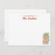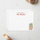 Cute colourful note cards for a school teacher, librarian or fellow bookworm. Simple name in black script lettering with a book stack propped against the border. Perfect for kindergarten or elementary teachers.