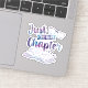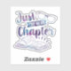 Show your love of reading with this fun purple sticker that says "Just one more chapter" in a trendy hand lettered style, featuring an open book and eye glasses.