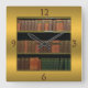 Book Lover's Square Gold Wall Clock