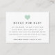 Slip these petite cards into your baby shower invitations when requesting books in lieu of cards. Gender neutral design features chic black lettering with a small mint green heart illustration at the top. A sweet poem explains the book request: "just one request, we hope it's not hard // Please bring a book instead of a card // By signing your name, we'll remember and share // your sweet gift, even when you're not there." Personalize with the guest of honour's name and shower date along the bottom.