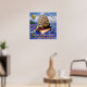 This beautiful, original square fantasy poster is based around the Emily Dickinson poem that begins, "There is no Frigate like a Book To take us Lands away." The quote appears at the bottom, below a masted sailing ship made of an antique book. The words from the poem are scrawled throughout. They're torn-looking on the sails, they wrap around the balloon in the distance, and they decorate the wings of a dragonfly that has a pencil body. They even faintly appear on the faded rainbow. Meanwhile, book seagulls fly away while a killer whale and a purple squid surround the book ship. It's a pretty, surreal scene for any book lover, avid reader, writer, English teacher, librarian or bookstore owner.