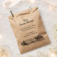 A bookplate-style small business bag with vintage letters and room for your info on the front, with art of old books and a writing quill on the front.