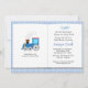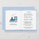 Invite your guests to a build a library baby shower for baby to be. Customize with baby's name and shower info. Design has a blue train with smoke and a blue check background. Perfect shower invitation for baby boy.