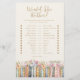(Choose MATT paper finish - NOT semi-gloss - to write on.) Entertain your guests with the "Would She Rather?" book-themed game, featuring whimsical watercolor illustrations on the front and a coordinating pattern on the back. This game merges literary romance with fun, engaging your guests in playful choices about the bride-to-be.