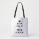 Keep Calm and Read a Book tote bag featuring a minimalist crown. Great tote bag for those that love to read.
