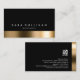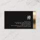 Ce remarquable comptable professionnel, audacieux carte de visite noir, présente une élégante bande de reflet en or fausse/photographique sur la bordure inférieure. Votre nom et votre titre apparaissent juste au-dessus de cette bordure à motifs, sur un arrière - plan noir jet. Le même thème à motifs apparaît au dos de la carte, sauf que la bande est sur la bordure droite. Le logo et les coordonnées de votre entreprise apparaissent dans la section noire de la carte. Ce design carte de visite fait une première impression frappante et est parfait pour les thèmes à fort impact, actif, mode, style, chic, professionnel, moderne, sophistiqué, abstrait, administration, finance, gestion, comptabilité, affaires, consultants.