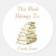 Bookplate sticker with stack of gold books. Can be used for DVD's, CD's or anything you lend out. Text fully customizable.