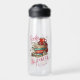 A fun and cheerful Christmas holiday design showcases a stack of books topped with a pair of glasses, a red and green scarf, and a cup of hot cocoa with whipped cream. Surrounding the books are holly leaves, candles, and stars. The colourful text reads: "Books, blankets, and hot cocoa." This design is available on a variety of products, making it a perfect gift for book lovers.