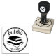 This round custom bookplate rubber stamp has a silhouette of a stack of books inside a double circle. It says Ex Libris and has room for your name in the template to personalize. Simply replace the sample name with your own.