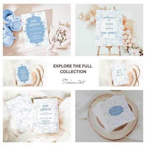 Toile De Jouy vintage, cobalt blue boy baby shower book request card