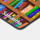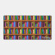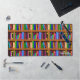 This original desk mat design for bibliophiles / proud bookworms has a bookshelf pattern made up of 25 repeating books that lean or stand straight, all on a shelf with a wooden look. This mat is perfect for a librarian, book collector, English teacher, writer, novelist, editor, or any avid reader. Use the easy template to personalize the lower right corner with your name (or simply delete the sample name "Samantha" to order without personalization).
