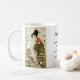 Do you practice Tsundoku? "Collecting more books than I can read and they just pile up." Charming mug with image of a young woman with her books.
