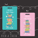 Cute teal library hall pass badge with the illustration of a watercolor bookstack on the front and the pattern of the same bookstack on the back . Personalize it with the teacher's name . Add a lanyard or metal clip if you wish to .