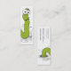 Original illustration of a funny looking green bookworm posing in a cool attitude pose. On the front of this bookworm mini bookmark business profile card template is one half of a worm with a face and on the other side is another half of bookworm illustration which shows he's peeking out of a hole. All the text is customizable, on the front is a space for your website text, which can be used for other text instead, and on the back is space for all other information about you. To customize this profile card bookmark click Customize it button under the image.