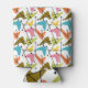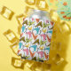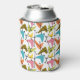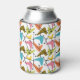 This can cooler has a mid-century modern design of boomerangs scattered about with segments crossing them.
