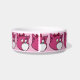 This is a heavy, durable bowl decorated with Tibbies of many colors, the perfect size for hungry/thirsty Tibs. The design is interesting and printing clear.