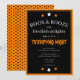Boos pour adultes et booze halloween invitation à la fête qui peut être personnalisée avec l'inclusion de vos propres détails de fête. Le design est éffrayant et amusant, avec des couleurs d'halloween orange, noir et blanc. Au verso se trouve un motif étoilé noir sur un arrière - plan orange.