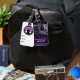 Purple boots luggage tag from Ann Charles' Deadwood Mystery Series.