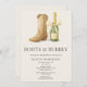 Boots and bubbly bridal shower invitation featuring a playful western inspired design with a chic bow accent and bubbly theme. Includes an integrated QR code that links directly to the gift registry for easy guest access. Perfect for western chic bridal showers, rustic celebrations, and fun pre wedding gatherings. Fully editable text with a clean, print-ready layout and customizable registry QR code.
