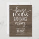 This save the date features a rustic background and "booze, food, and bad dance moves" to create a fun way to tell your guests your wedding date.