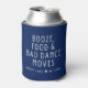 Fun wedding keepsake favours for your wedding guests. Beer cozies featuring a navy blue and white text design that reads - Booze, food and bad dance moves. Customize with your names and wedding date. You can also add a short thank you message to the bottom.