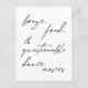 In this elegant, fun design I've used a contemporary handwritten script font to create graphic typography overlays. The one on the front reads "booze, food, & questionable dance moves" and on the back, "save the date" and "kindly deliver to:". Fill in the template blanks with your own details to personalize the design. All layers were added separately and left unlocked so you can also click to further customize and re-position text or even change sizes or detail fonts. You may also change the background to any colour you prefer.