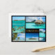 Carte postale de luxe d'un collage avec de multiples photos de plages, bungalows sur l'eau et action sous-marine sur l'île tropicale Bora Bora près de Tahiti en Polynésie française dans l'océan Pacifique dans un cadre noir avec le texte : "Bora Bora" en lettres d'or.