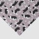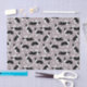 Cute black and white border collies sit, stay and rollover on a grey background with pawprints, a fun dog themed pattern.