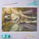 “Celestial Canine” This artwork captures the graceful elegance of a Border Collie, enhanced by the whimsical addition of fairy or angel wings. The dog is dressed in an elaborate costume, suggesting a narrative of fantasy and adventure. The surrounding magical garden setting further immerses the viewer in a world where nature and myth intertwine, creating a serene and enchanting visual experience.