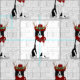 A fun "woof" word art background is paired with a Border Collie wearing deer antlers, a red bandanna and cute cowboy hat decorated with holly for those holiday sewing projects, crafting projects and gift-giving ideas for the dog lover - or the dog!
