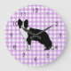 Border Collie Dog Abstract Illustration Gingham Large Clock