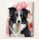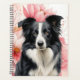 Great gift idea for dog moms and dog lovers, a desk planner for school, home activities or office, featuring a Border Collie sitting against a backdrop of big, bold pink lilies in a botanical dog lover image.