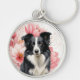Border Collie Dog and Bold Pink Lilies Keychain