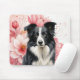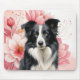 Great gift idea for dog moms, students, office workers and dog lovers, this great mouse pad features a Border Collie sitting against a backdrop of big, bold pink lilies in a botanical dog lover image.