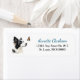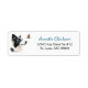 On this cute return address label, an image of a black and white Border Collie Dog is fascinated by a flitting Monarch butterfly. Your custom text is in blue and black at the right of the image.