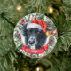 This sophisticated Border Collie ceramic Christmas ornament features a lovely watercolor portrait of a black and white Border Collie dog in a Santa hat, surrounded by holiday greenery, pinecones and berries, with a red banner with your pet's name (or change to Merry Christmas). You can fully personalize this design by changing the greeting and year on the back in an elegant font. This is a stylish custom Christmas ornament is perfect for Border Collie lovers, herding dog lovers, dog lovers, and pet lovers.
