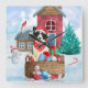 Border Collie Dog In snow Christmas Dog House Square Wall Clock
