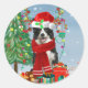 Border Collie dog in Snow with Christmas gifts Classic Round Sticker