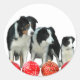Border Collie Dogs with Red Christmas Ornaments Classic Round Sticker