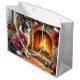 Border Collie Fireplace with Christmas Lights Large Gift Bag