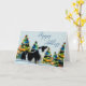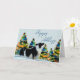 Border Collie in Winter Snow Christmas Tree Holiday Card. Calm winter snow landscape with a lovely black and white border collie and colourful Christmas trees. Merry Christmas in a trendy script. Holiday card for a border collie owner. You can change the text or erase it.