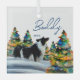 Border Collie in Winter Snow Forest Christmas Trees Glass Ornament. Calm winter snow landscape with a lovely black and white border collie and colourful Christmas trees. Dog`s name is in a trendy script. Lovely holiday ornament for border collie owners, dog lovers and animal lovers. Personalize the name and the year.