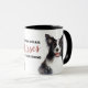 "Border collie kisses fix everything" declares this cute mug for the dog owner. The image on each side is a beautiful black and white Border Collie.