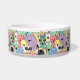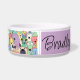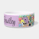 For stylish dogs, this dog bowl features a modern cartoon collage of dogs and a picture of your Border Collie and the dog’s name.