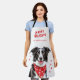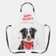 Border Collie Red Heart Bandana Christmas Apron. Cute and happy black and white Border collie with a red bandana around the neck with hearts. Add your family name.