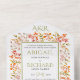 Berries and leaves border olive green fall all in one wedding invitation. This lovely design features a frame made of berries and leaves, the names in olive green and your text. The tear off RSVP card is detachable.