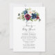 Drive through bridal or baby shower invitation featuring navy blue, white and maroon red peonies and roses.