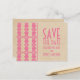 Bordure Art déco élégante et raffinée Enregistrer la date Carte postale avec une bordure motif magenta déco sur un arrière - plan de texture de papier faux. Cette carte postale de date est un choix idéal pour annoncer votre mariage moderne. Facile à customiser, il suffit d'ajouter les détails de votre mariage dans les champs de texte fournis. Cliquez sur "Customiser" pour trouver d'autres options de personnalisation.