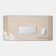 Nom ou texte personnalisé en orange brûlé sur tan pâle tacheté avec une bordure beige brumeuse et neutre foncé et de jolies petites pêches et fleurs crème tombant du coin inférieur gauche.