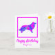 Bordure collie chien silhouette dans fou rose chaud et bleu brillant abstrait motif moderne . Le message d'anniversaire à l'intérieur peut être changé à tout ce que vous voulez. Personnalisez avec le nom sur le devant.